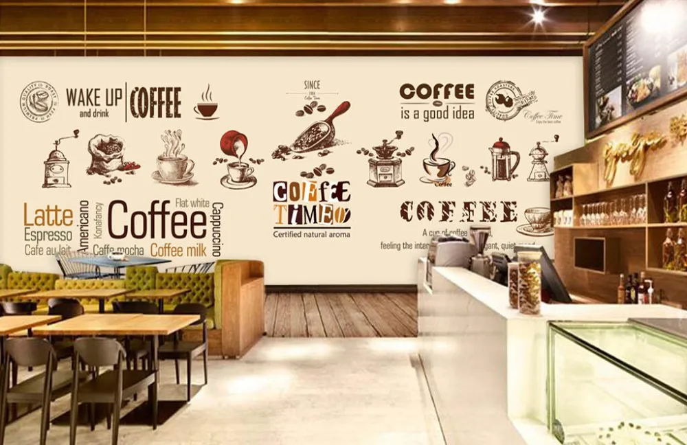カスタム食品ショップ壁紙 コーヒー 3d現代壁画のカフェレストランホテル背景壁塩ビ壁紙 Modern Mural Pvc Wallpapershop Wallpapers Aliexpress